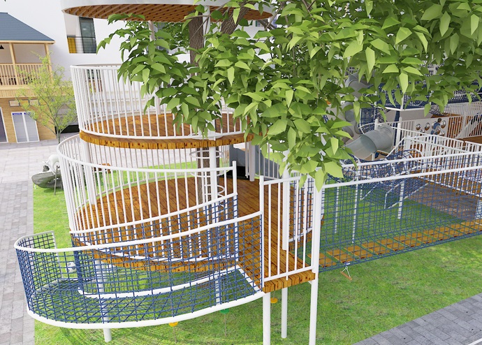 设计项目:室内网绳滑梯玩具区,幼儿园门头改造;
